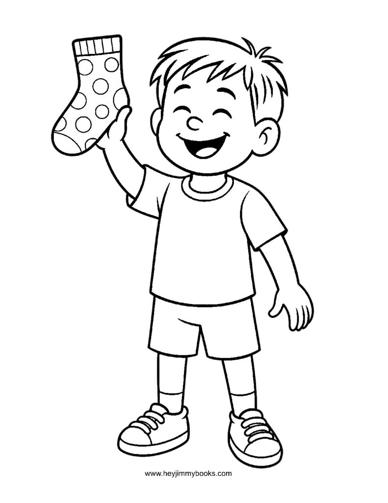 Ready to get creative! Download Jimmy’s free coloring page and make your own, crazy, colorful, mismatched sock masterpiece! Perfect for classrooms, rainy days, and joyful little hands,